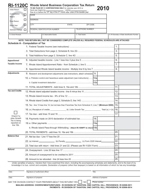 Form Ri 1120c Rhode Island Division Of Taxation